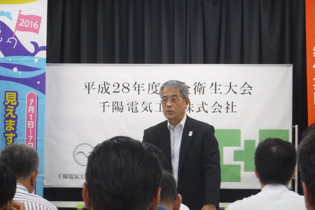 平成28年度全国安全週間実施に伴い、弊社と千陽協力会(弊社協力業者会)合同で去る平成28年7月2日(土) 18:00~19:00 より場所:新宿区四谷1-8-6 ホリナカビル内TKPスター貸会議室第2 にて平成28年度安全衛生大会を開催いたしました。